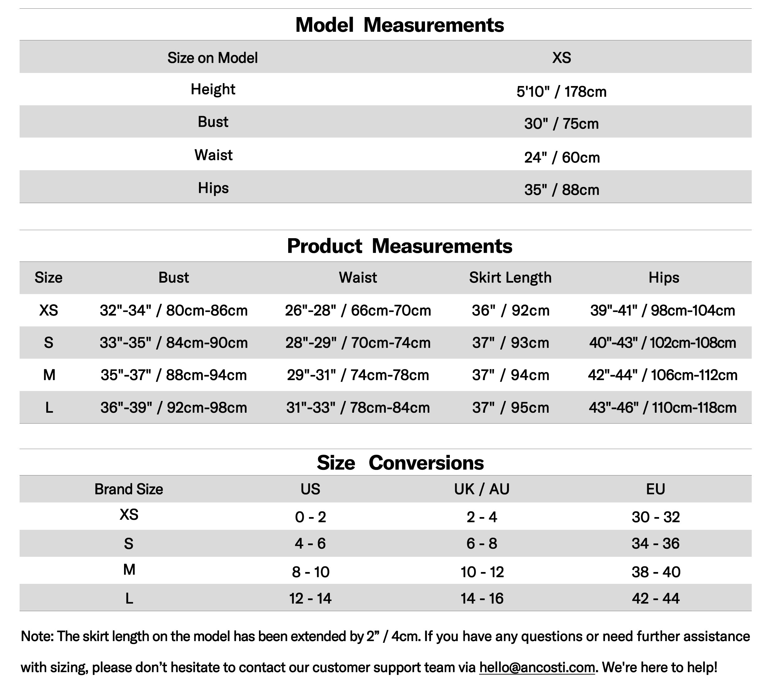 Please note: The skirt length on the model has been extended by 2” / 4cm.