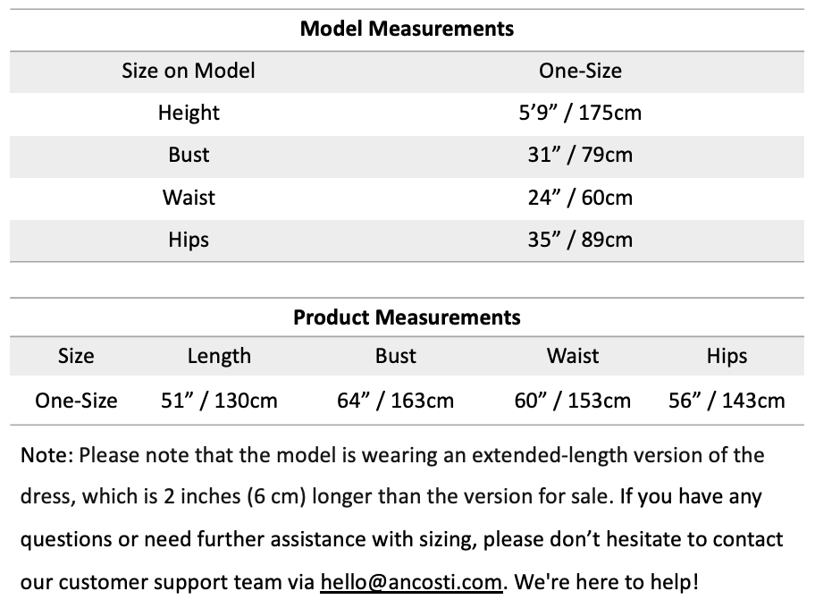 *Please note that the model is wearing an extended-length version of the dress, which is 2 inches (6 cm) longer than the version for sale.