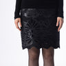 Embroidered faux leather skirt