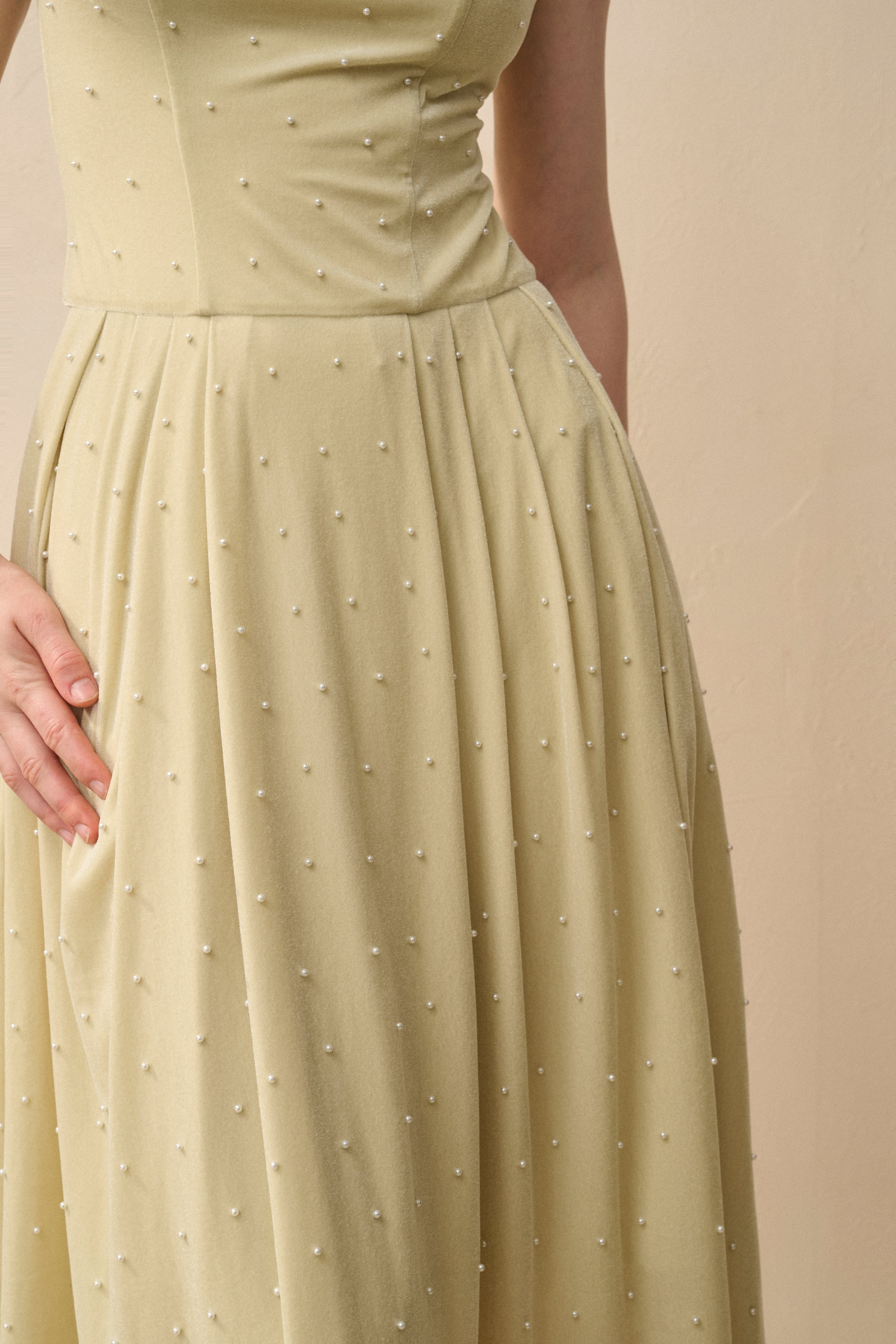 Velvet pearl-embellished dress