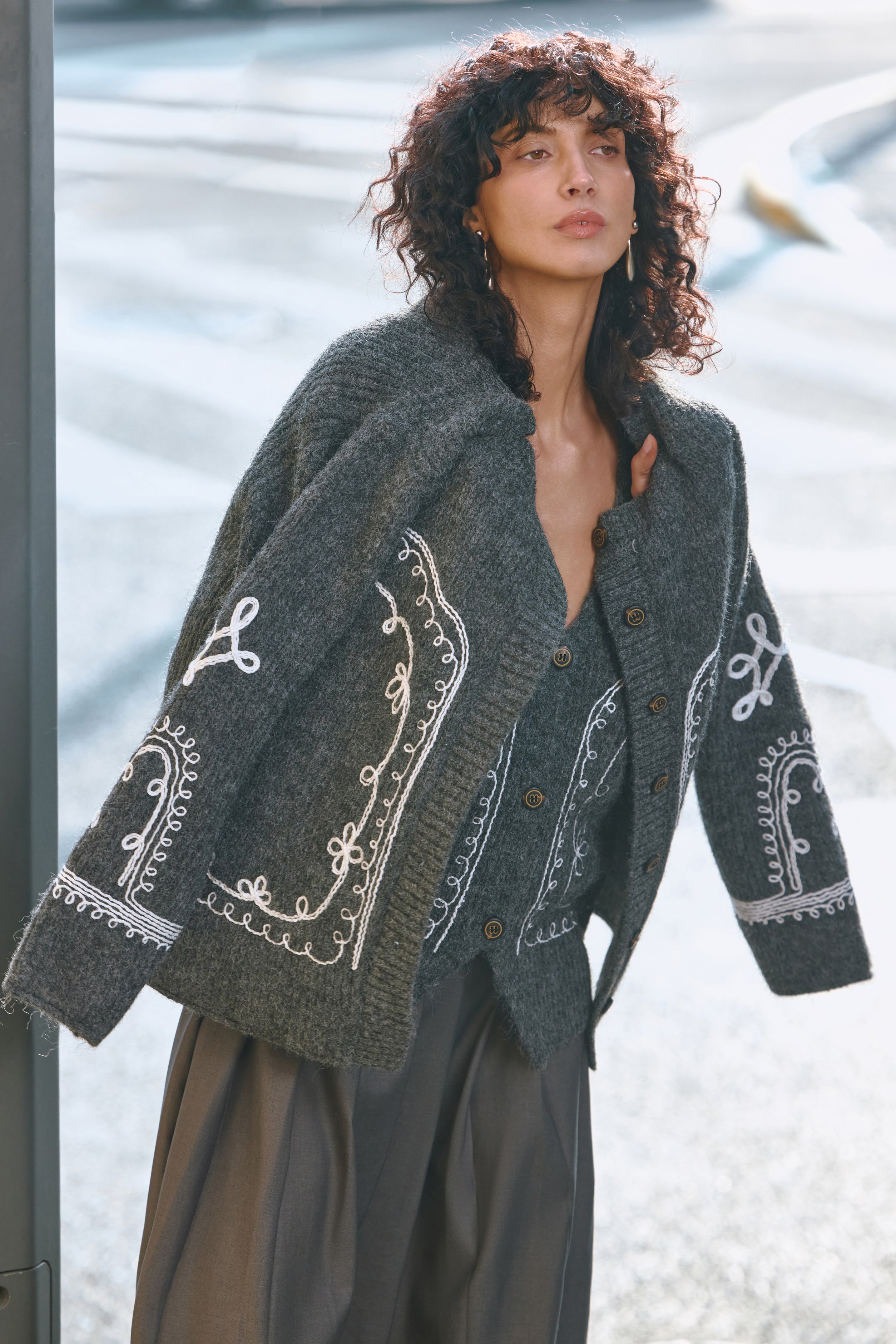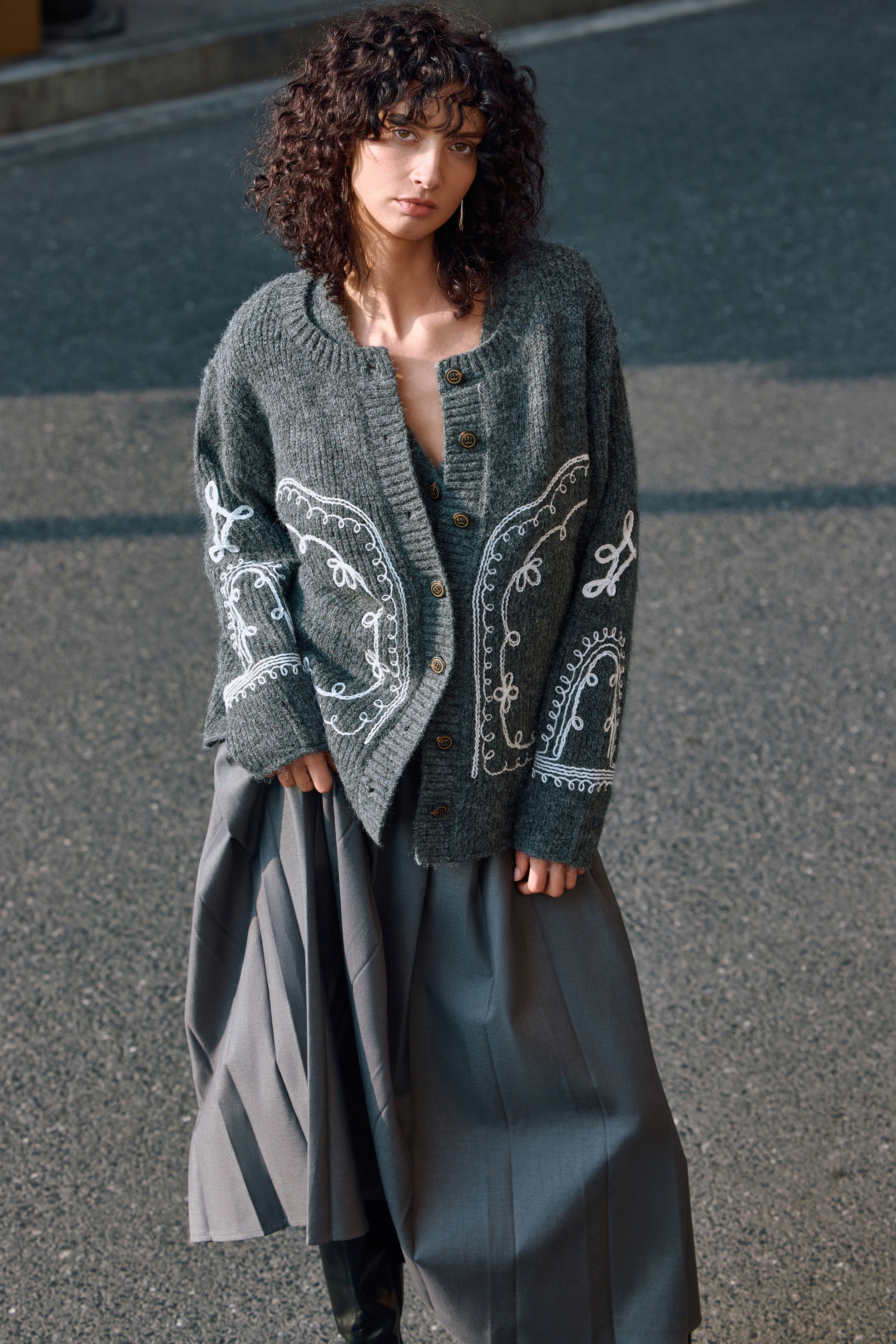 Elevate your everyday outfit with a dose of detailed charm. The intricate, playful embroidery on this soft wool blend cardigan is the star, while the easy-going fit and practical button-front make it a joy to wear from season to season.