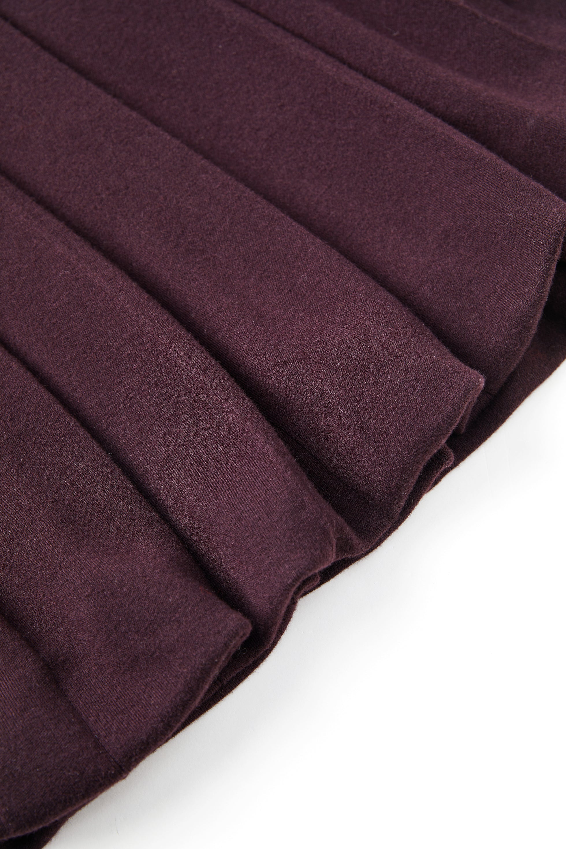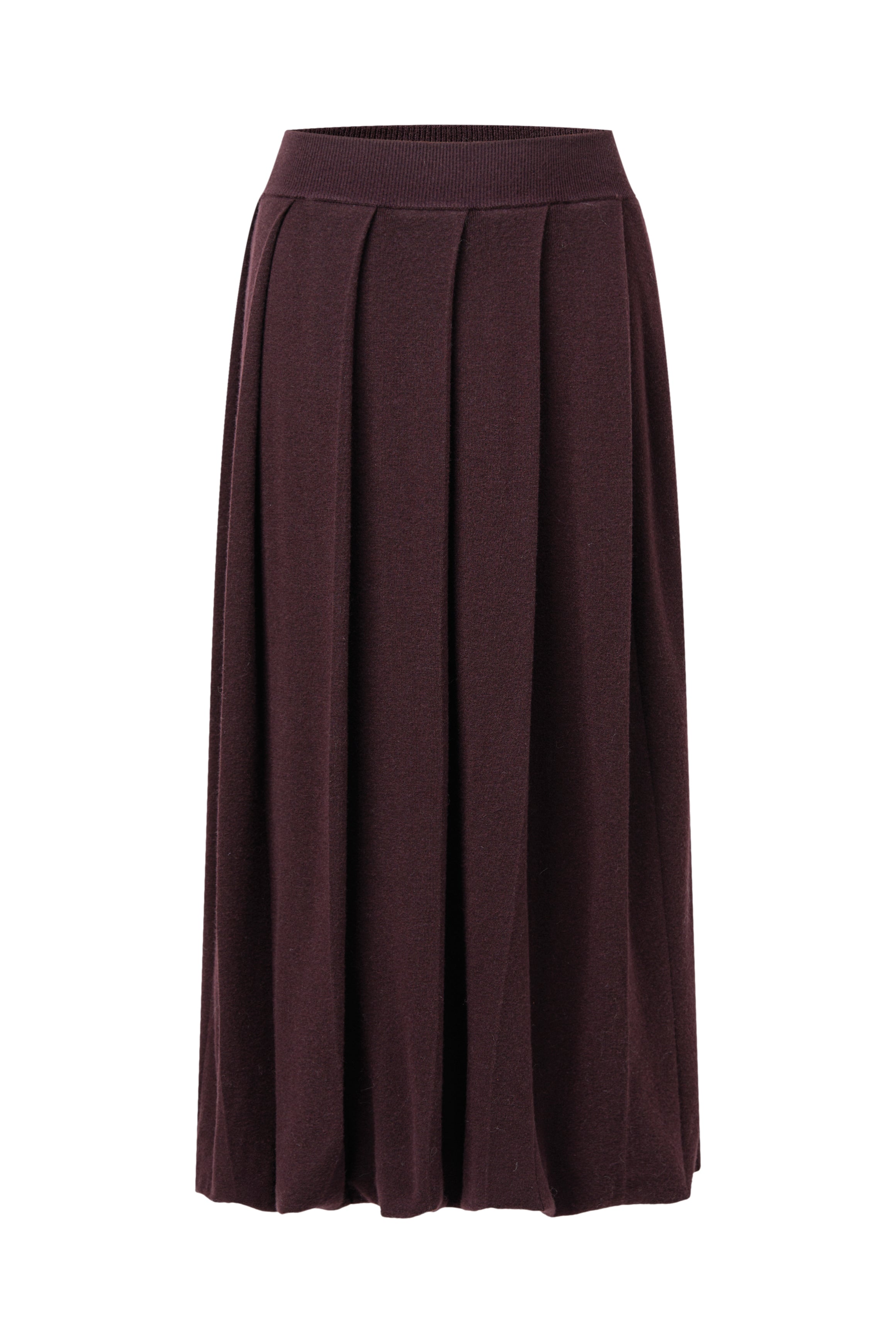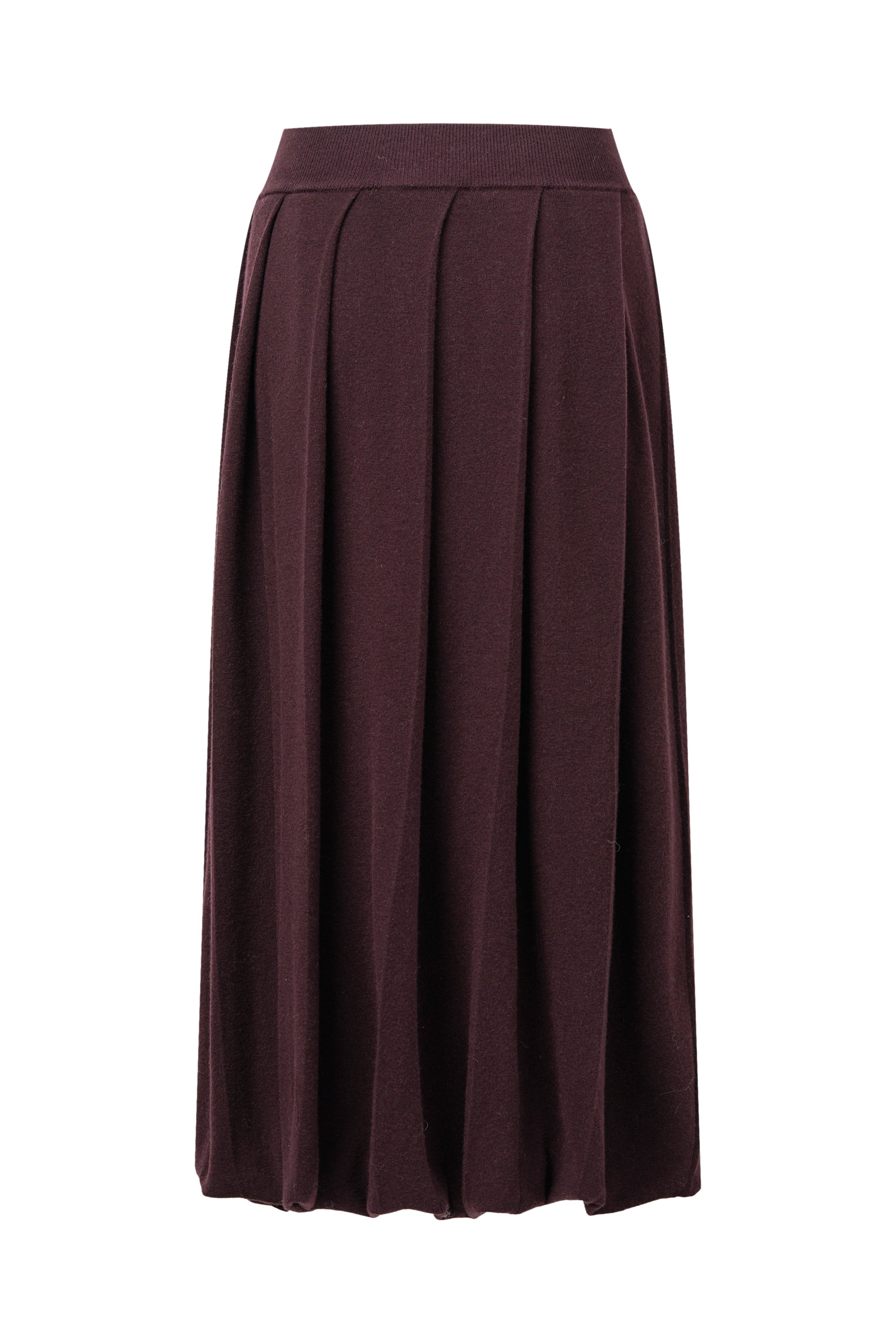 Elevate your everyday wardrobe with this versatile skirt. The pleated design and softly structured hem are rendered in a comfortable mid-weight wool knit for all-day polish. Complete your outfit by pairing it with the rosette cardigan or with the off-shoulder pearl sweater for an effortlessly chic and feminine ensemble.