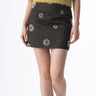 Make a statement in the glitter garden mini. The tailored taupe base is brought to life with intricate beaded blossoms, offering a striking contrast that ensures you'll stand out from the crowd.