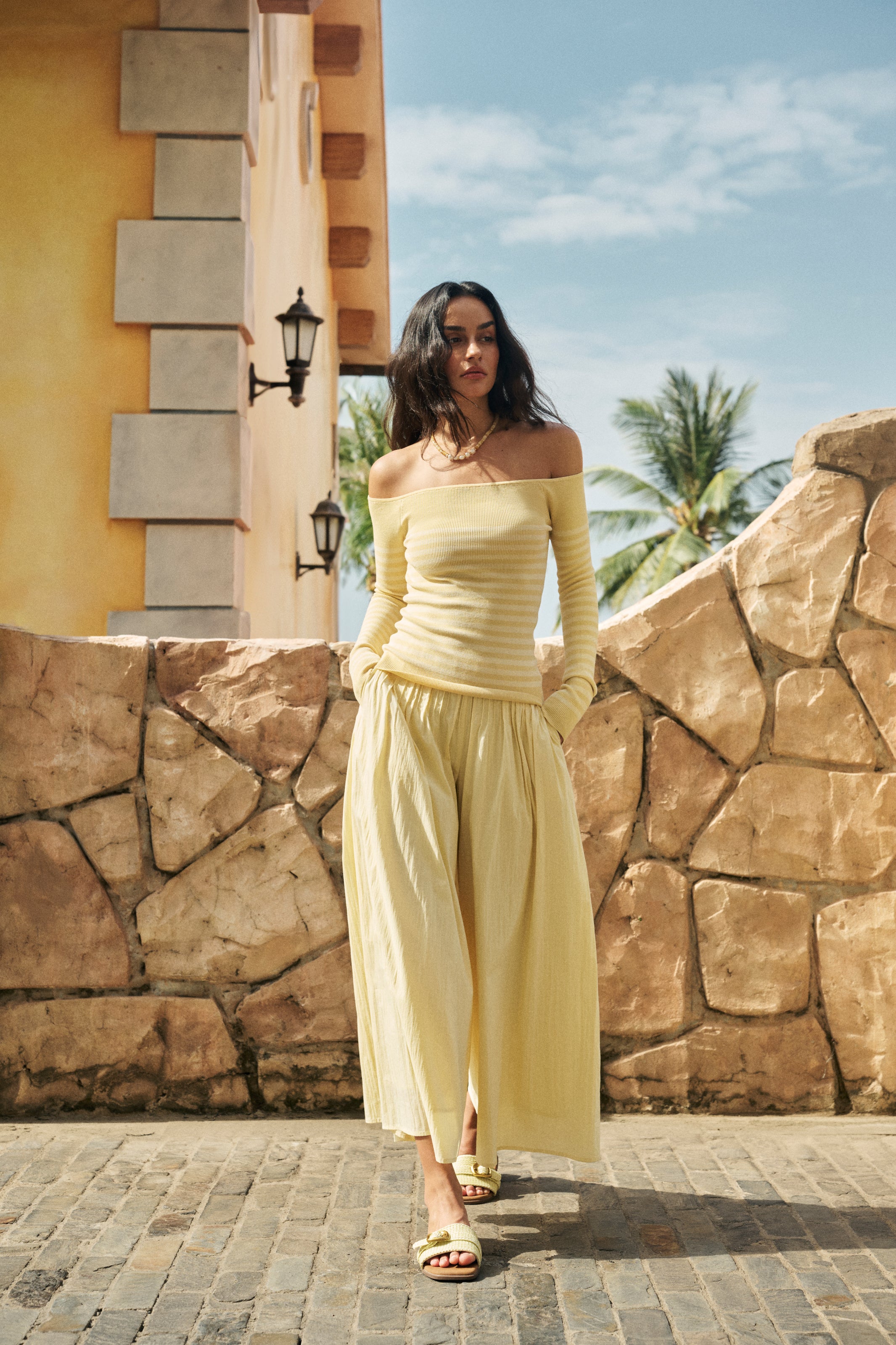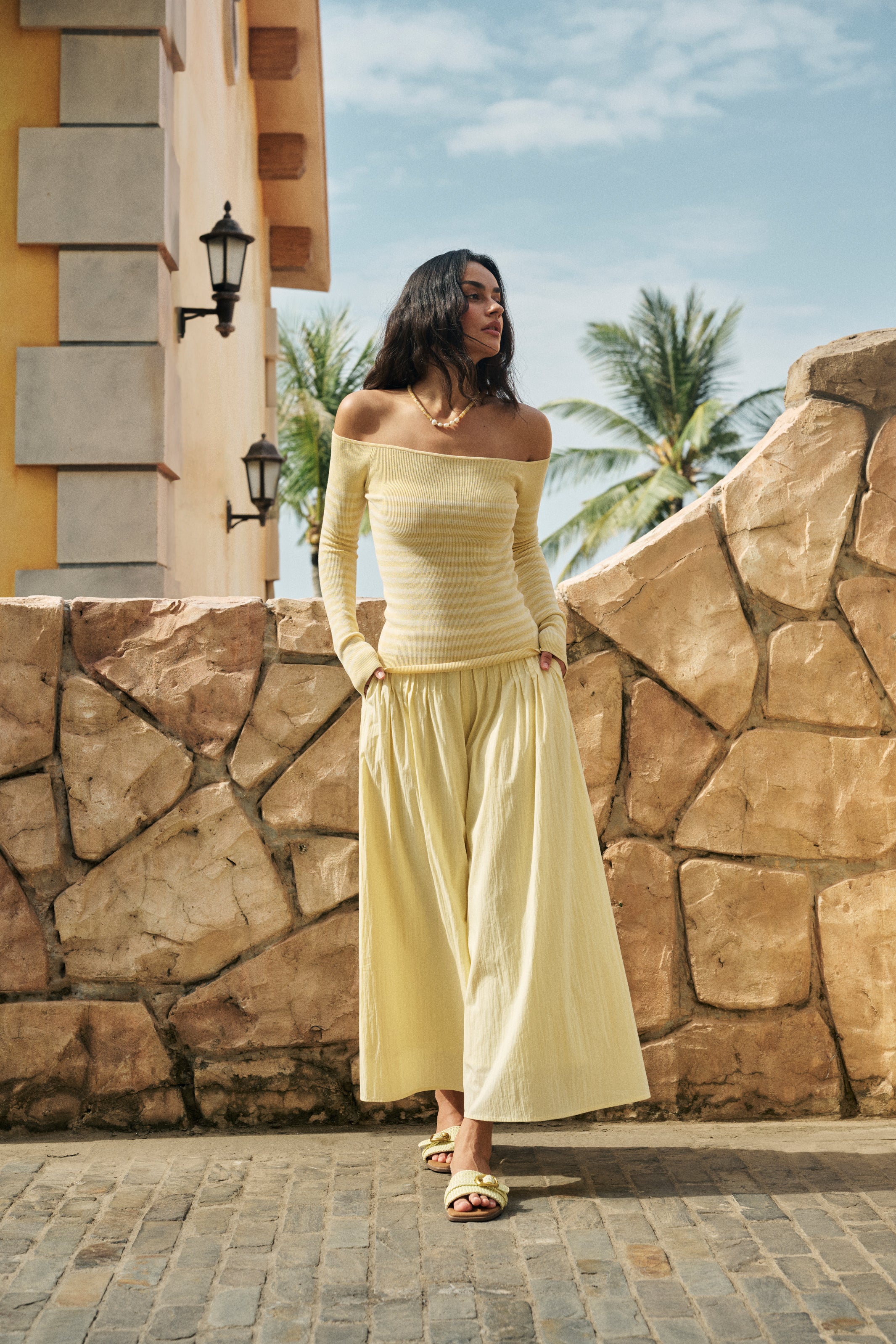 Crafted from a lightweight knit with plenty of stretch, this off‑the‑shoulder sweater offers a slim, body‑hugging fit that moves with you. The timeless striped pattern adds a fresh touch to an easy, everyday essential.