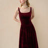 Draped in rich burgundy velvet, this midi dress exudes timeless elegance. The square neck and fit-and-flare silhouette create a feminine shape, while the side-seam pockets and concealed zipper blend practicality with polished sophistication.