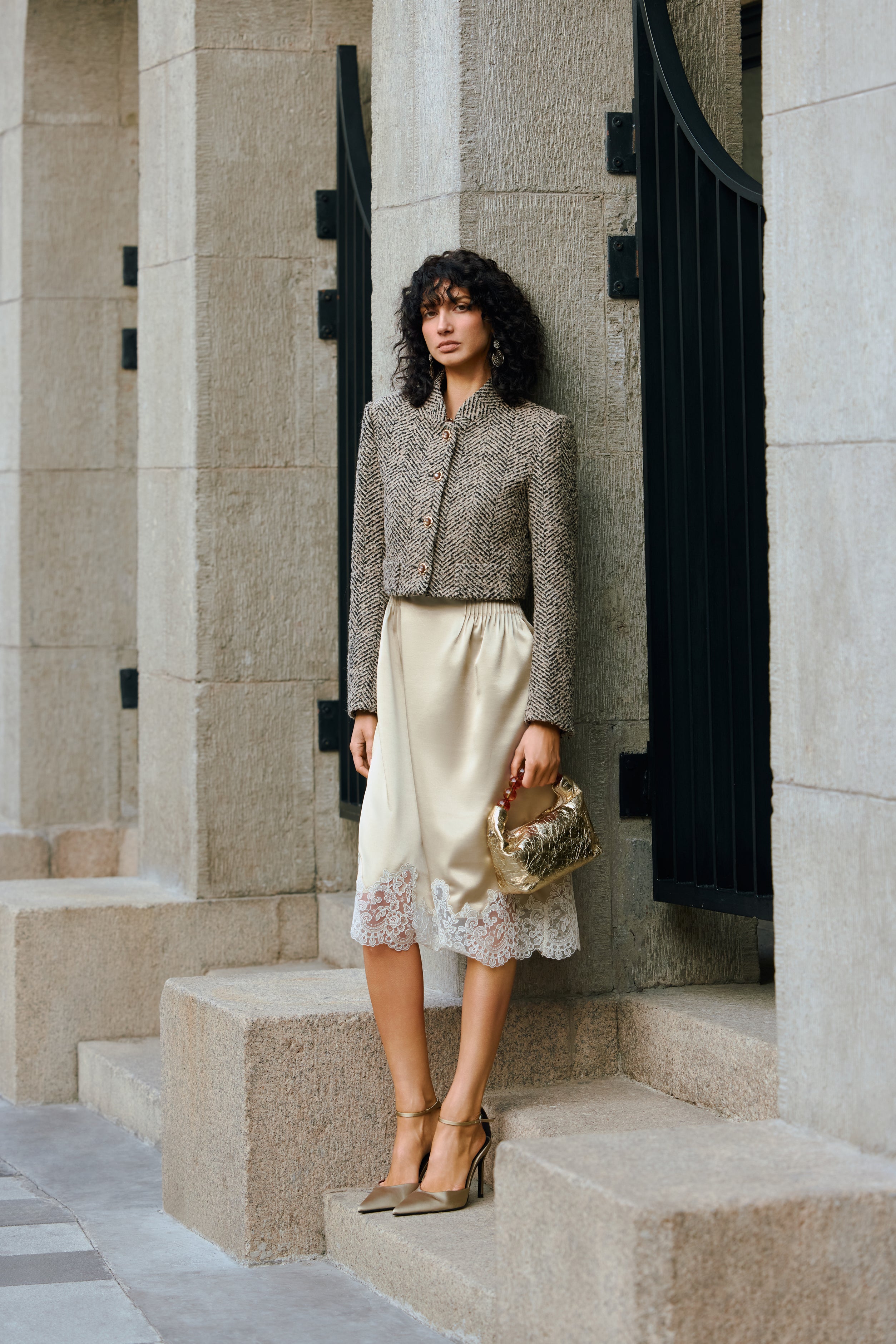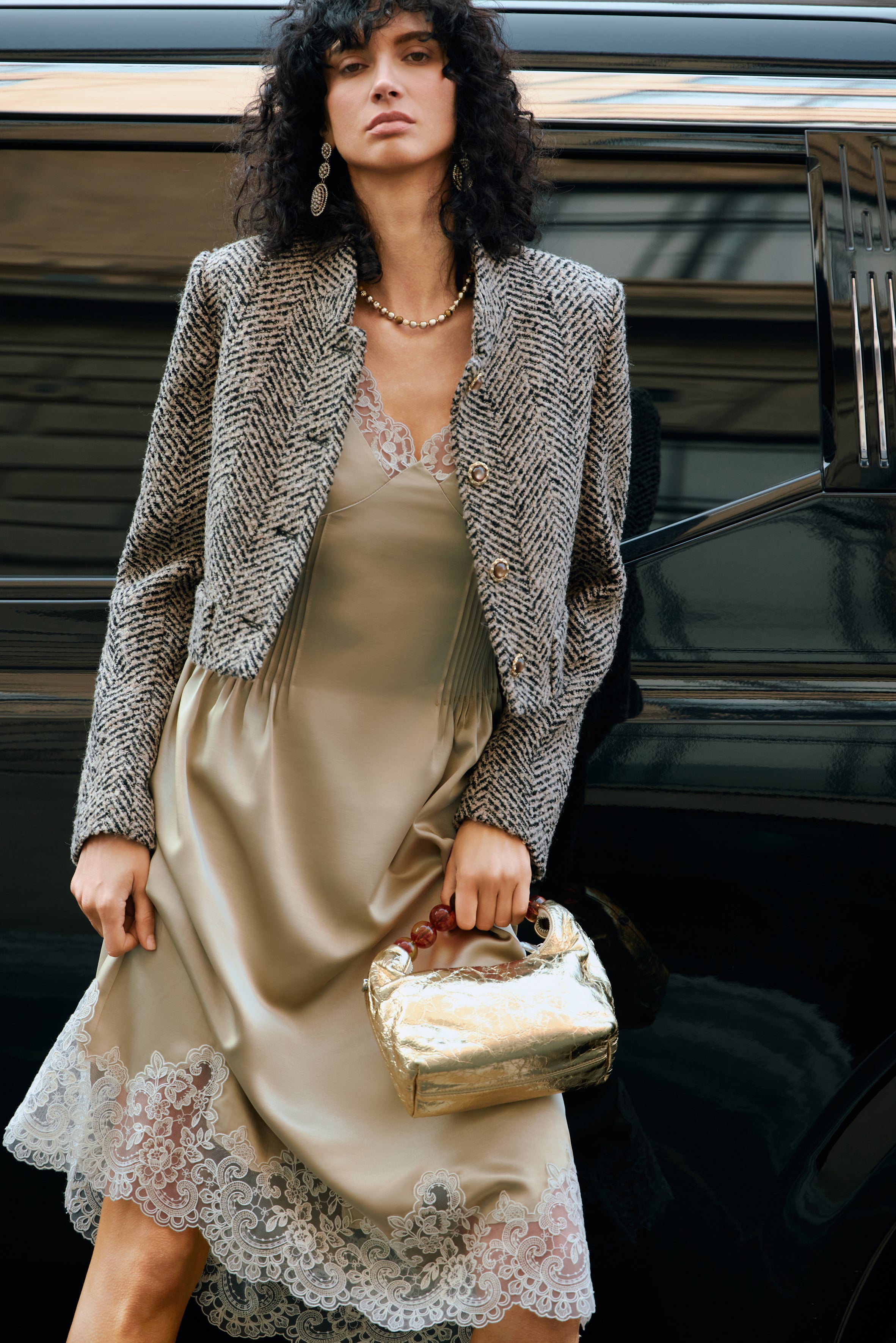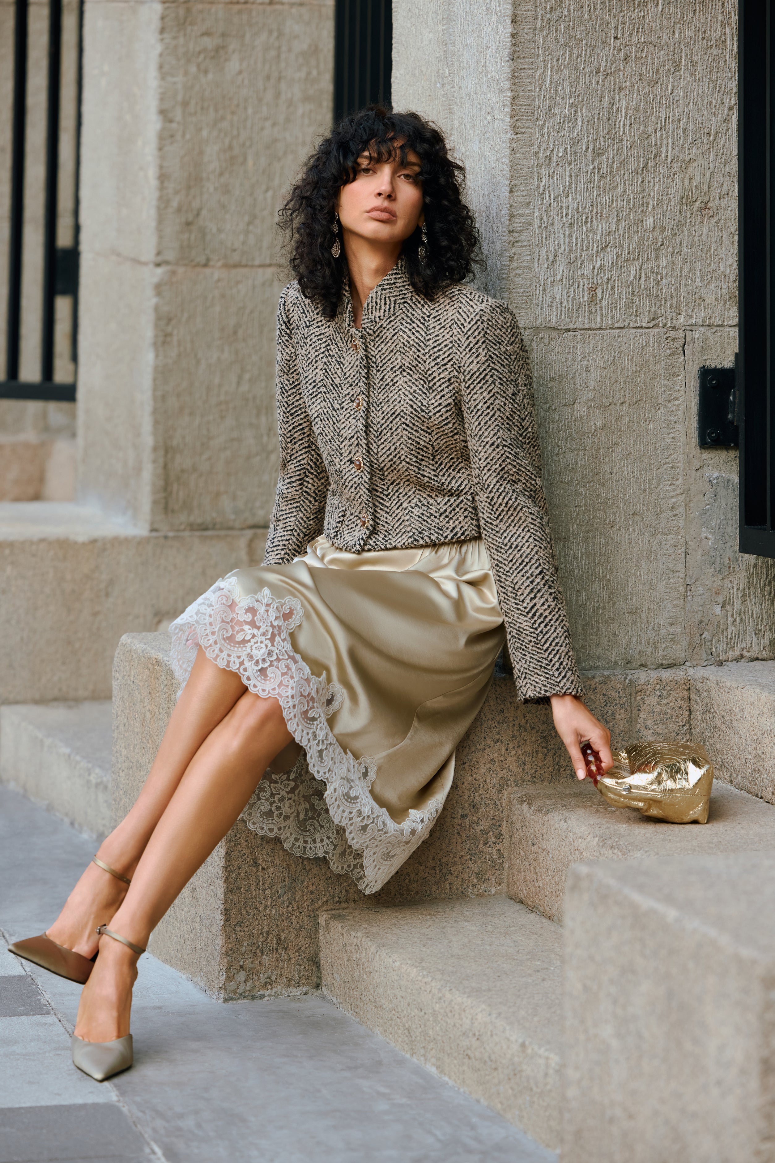 Sculpt your silhouette with this crisply tailored cropped jacket. The stand collar and full button placket lend a polished structure, making it the perfect refined layer to elevate any outfit instantly.