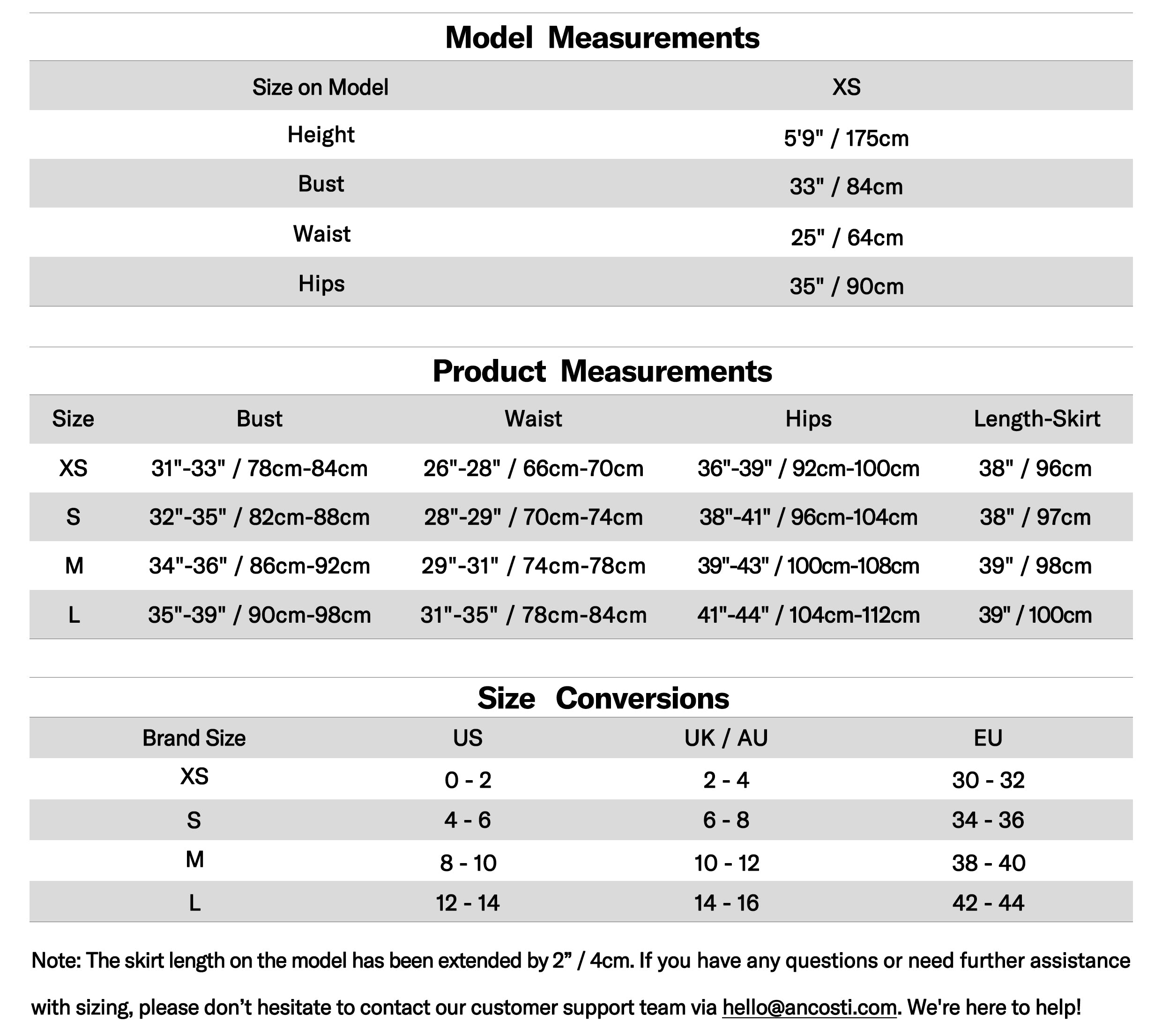 Note: The skirt length on the model has been extended by 2” / 4cm.