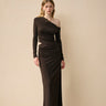 Crafted for movement and comfort, this one-shoulder set features a ruched waist and a pull-on maxi skirt. The incredibly stretchy fabric feels like a second skin, offering a slim, flattering fit that moves with you. The ultimate expression of minimalist, effortless chic.