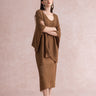 Discover timeless elegance in our mid-weight knit set. This sleeveless midi dress features artful mixed patterns, complemented by a soft knit shawl. Perfect for a modern, polished look.