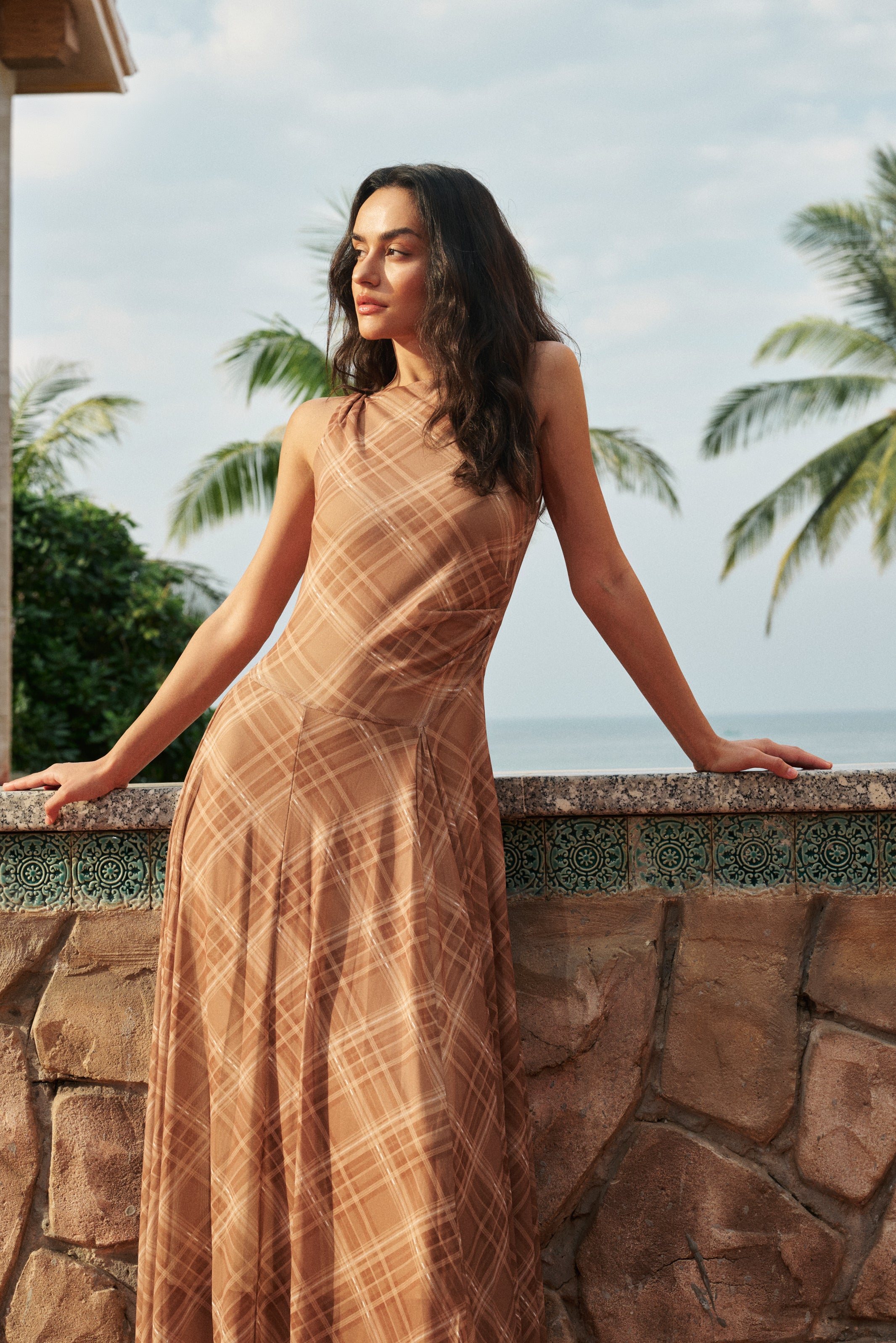 Sleeveless plaid maxi dress