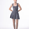 Crafted from 100% wool, this dress blends timeless elegance with modern comfort. The square neckline and pearl adornments draw the eye, while the fitted waist sculpts a flattering silhouette that flares into a playful A-line mini. A perfect piece for making a sophisticated statement.