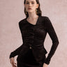 This top combines the liquid drape of velvet with architectural details like an asymmetrical neckline and a diagonal placket. The strategic ruching and slim fit create a figure-skimming silhouette that is both sophisticated and irresistibly feminine.