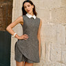 This wool-blend mini dress is crafted for impact, featuring a sharp collared neckline and a sculpted skirt.A modern silhouette that makes a powerful statement.